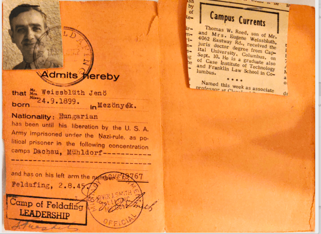 The camp had many important visitors-Mayor Laguardia from New York was a visitor and he even left his hat in Eugene’s office. General Patton visited as did General Eisenhower. He was also the founder of the Federation of Hungarian Jews in Germany. He became the Vice President of the Federation and editor of its newspaper. He then served as President of the Federation until he emigrated to the United States.