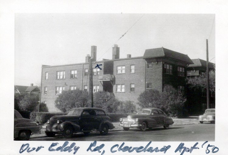 After a very brief period in New York when they stayed with the Kertesz family as Jeno hoped to stay in New York and work as a journalist, they took the train to Cleveland where they were met at the station by the Schwartz family. The sponsor was a distant relative who also had hopes that Jeno would marry his daughter, pictured below. However, Jeno had fallen in love with Gertrude Guttmann, a widow residing in the Weilheim Displaced Persons Camp following the end of the war. Within a few days, Jeno and Tom had rented room with kitchen privileges and Tom started working as a laborer in a small factory. Jeno and Tom lived extremely frugally until Eugene got a job in the shipping room in a clothing factory as a order filler.