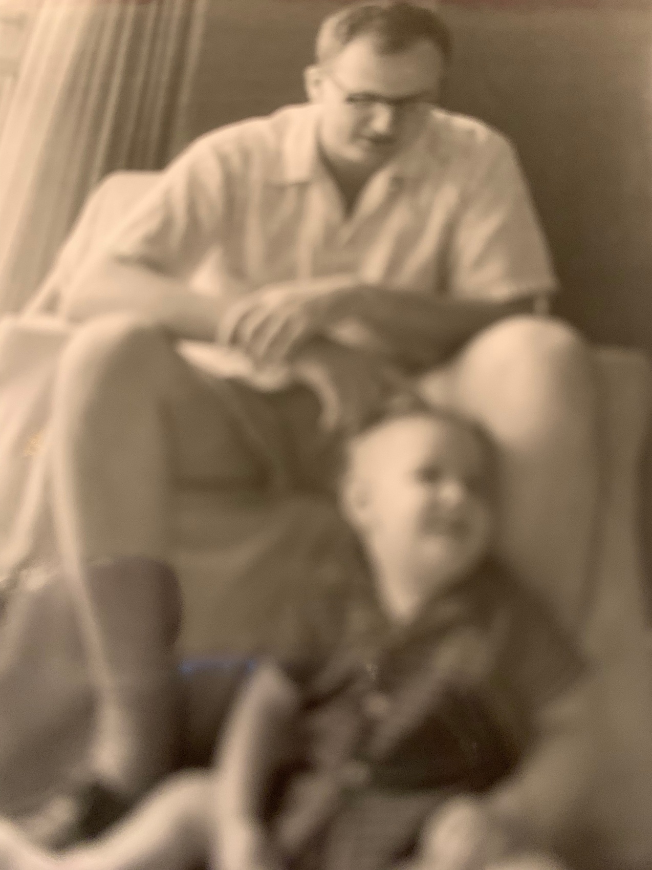 One of my earliest memories is a game we played every morning for awhile. Each morning, when he first got up and was in the bathroom, I’d run to my parents bedroom and hide under the blankets. When he sat down to put on his socks, I’d jump out to surprise him and, to my great joy, every morning he’d be dramatically surprised with hands outstretched and mouth wide open.
