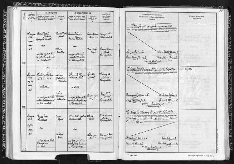 Rosza and Jeno’s marriage record (upper right) follows (note that her brother Jeno was a witness):