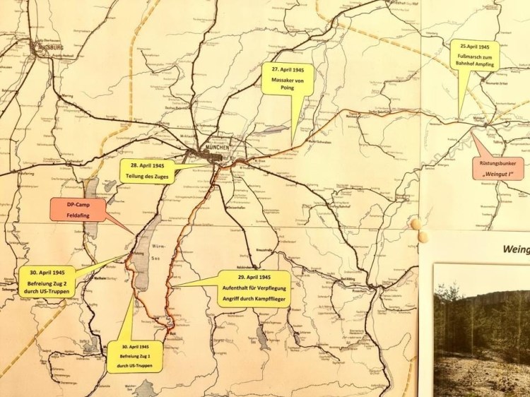 Toward the end of the war the head of the SS-Reich Security Main Office (RSHA), Kaltenbrunner, devised a plan for the murder of the Jewish prisoners at Kaufering and Mühldorf. It was known by the code name Aktion Wolkenbrand (Action Fire Cloud). Since it could not be implemented, most of the prisoners were evacuated from the Mühldorf camps. One of the evacuation transports was by rail to Poing, county of Ebersberg near Munich. Probably about 200 prisoners were killed or injured, either due to an error by the guards releasing the prisoners too early or perhaps as a result of a